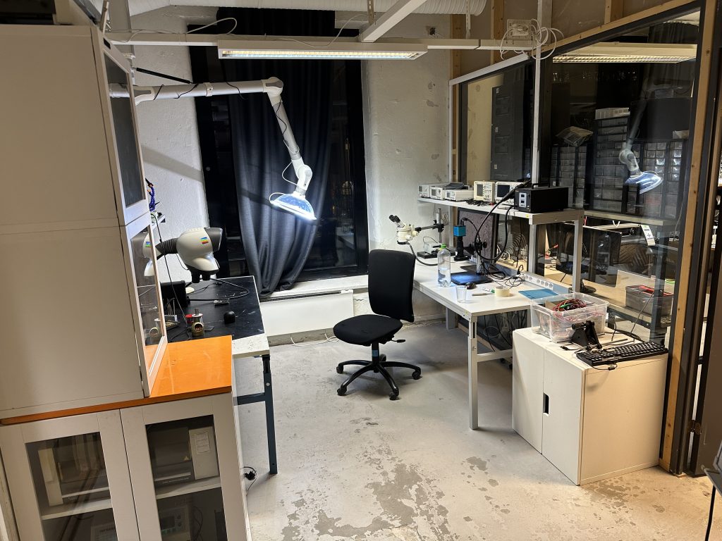 En annen del av dugnaden fokuserte på å gjøre SmutCave klar. Døren inn til kursrommet har nemlig vært bak en av pultene i Smutcave, så for å bruke denne måtte det masse endringer til. Vi fikk en ny og smalere ESD-pult inne på Smutcave, ESD-pulten fra SmutCave ble flyttet til labben og den eksisterende pulten i labben ble flyttet til en ledig kontorplass.